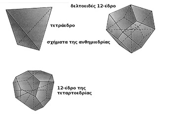 Σχήμα 1: Κρύσταλλοι της ολοεδρίας του κυβικού κρυσταλλογραφικού συστήματος.